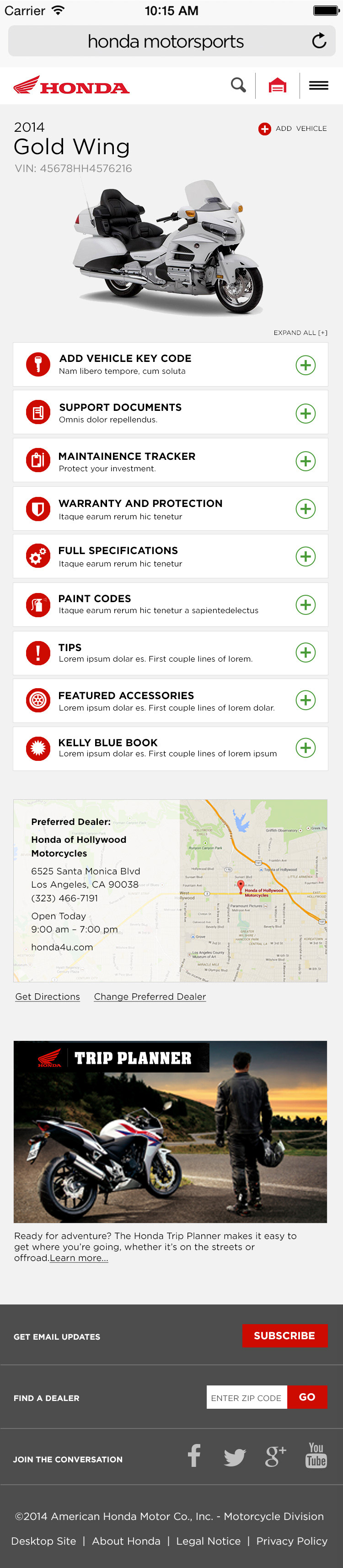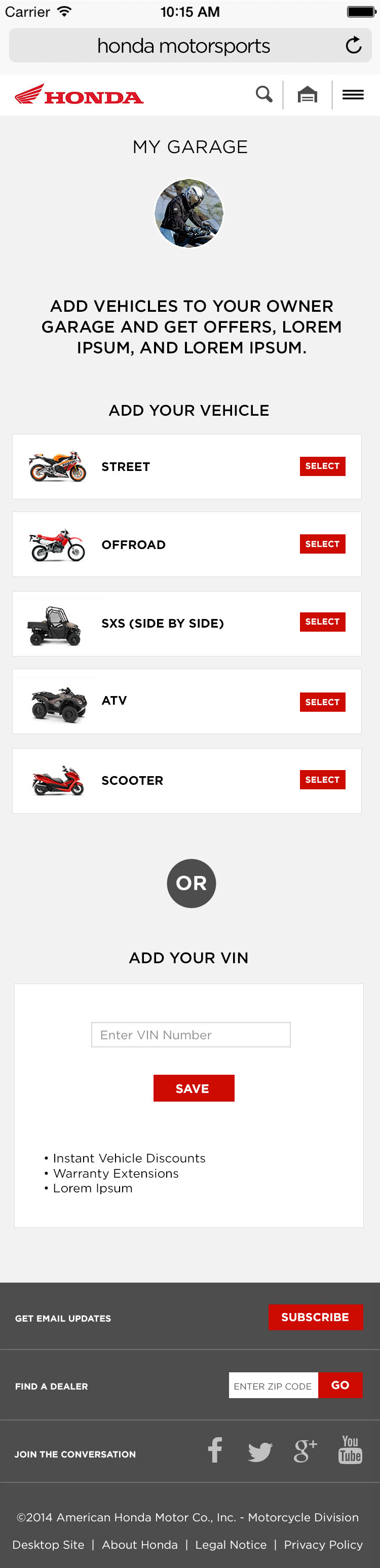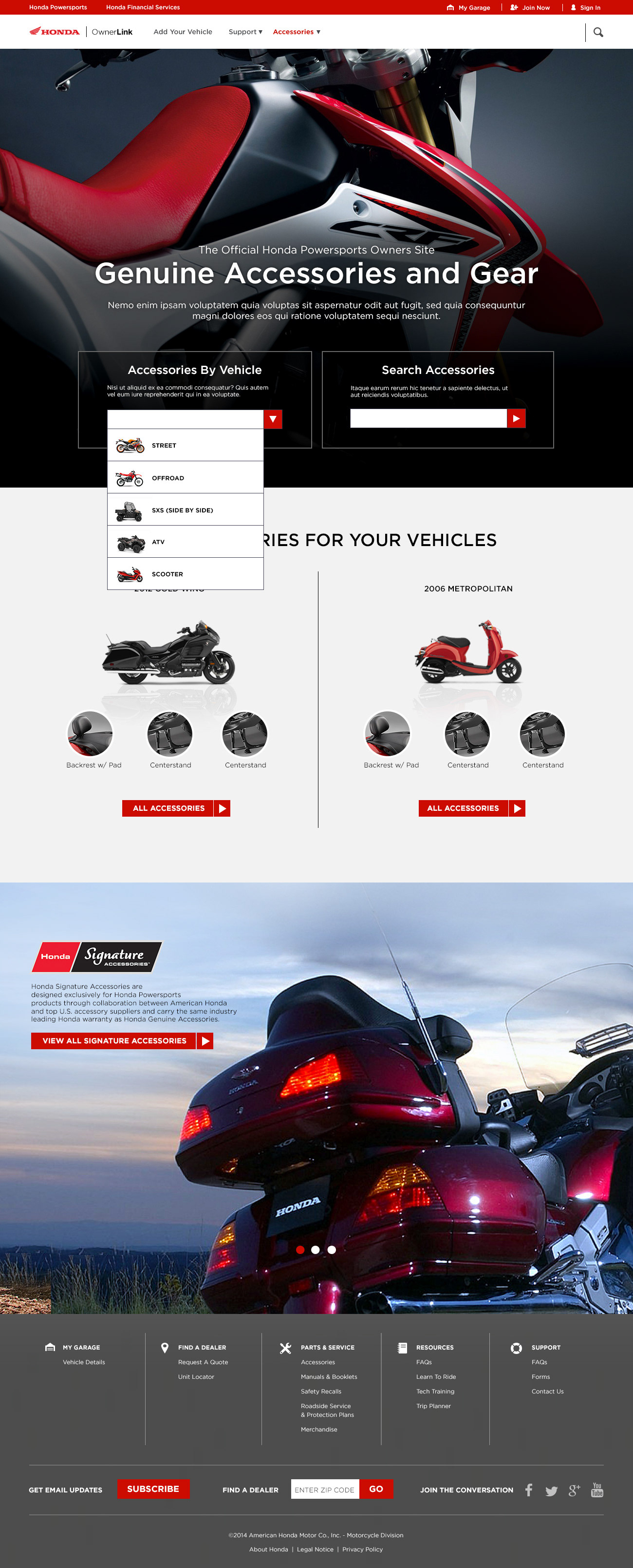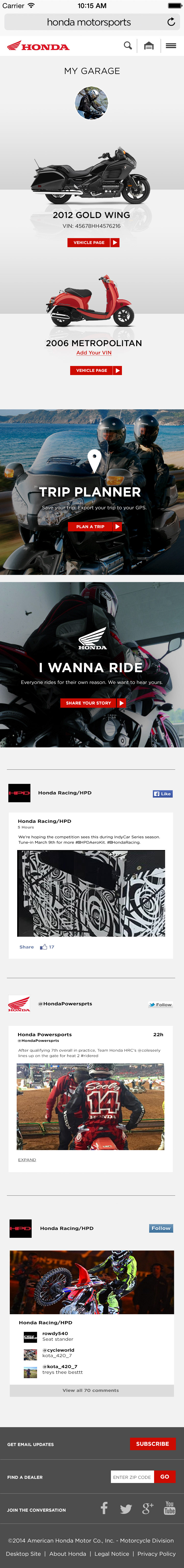 I designed an online destination for Honda Motorsports that aimed to provide a personalized and updated experience across desktop, tablet, and mobile devices.