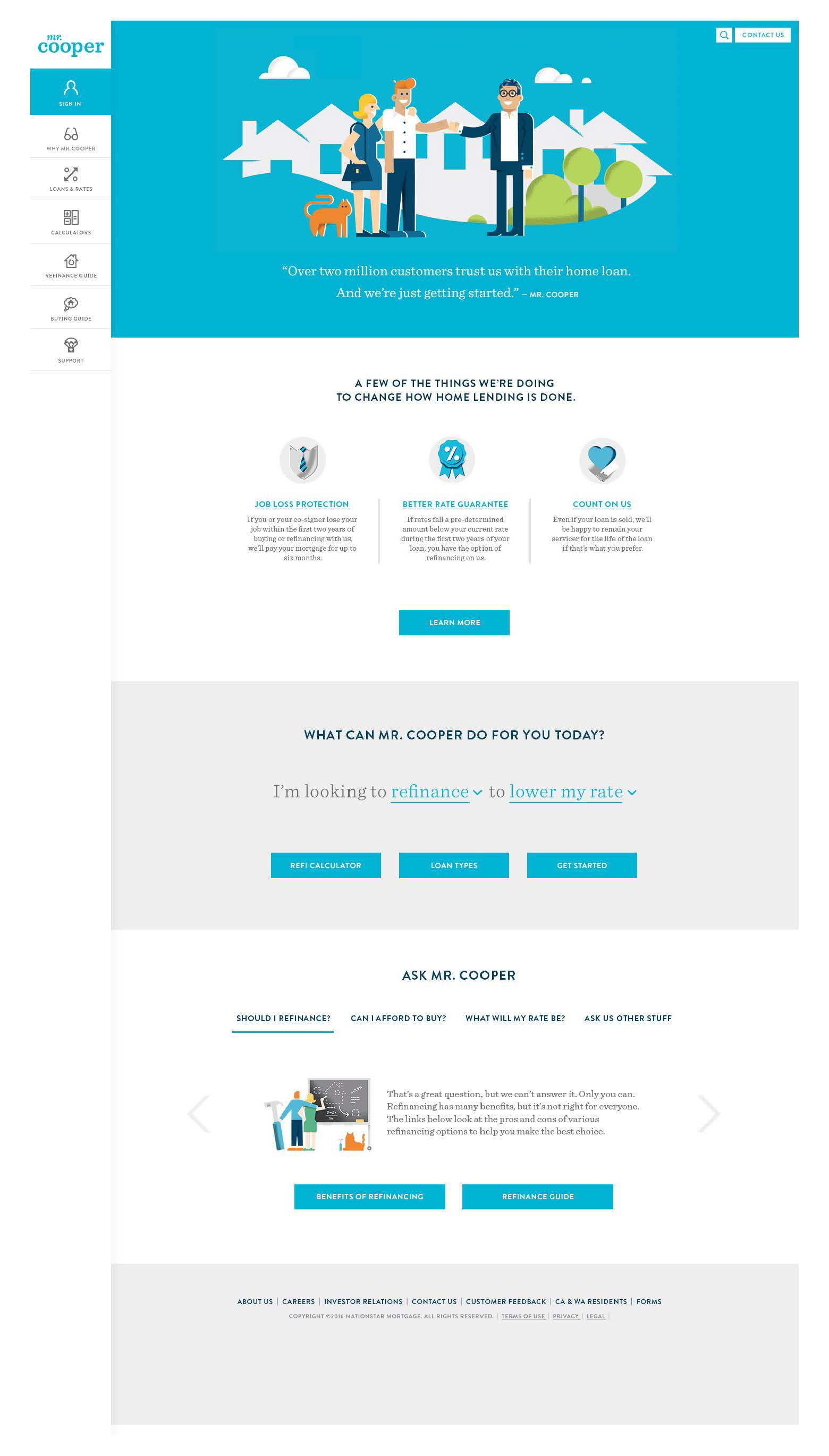 At Phenomenon, I led a small team of UX and designers in the complete rebrand of NationStar, the nation's leading mortgage broker. Our goal was to design friendly interfaces that would simplify the complicated process of real estate transactions and make them easily accessible online.